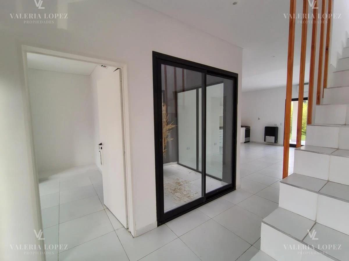 Luminosa y funcional casa en alquiler en Barrio Cerrado Springpark Pilar, complejo con excelente acceso, por colectora panamericana alt. km 51.5. Casa de 5 ambientes · 1 cochera Expensas 200.000$ SpringPark es un barrio privado ubicado sobre la Colectora Oeste del ramal Pilar. Próximamente contará además con acceso por la ruta 8. Su localización es inmejorable: muy cerca de centros comerciales, propuestas gastronómicas, hospitales, colegios, universidades y una amplia variedad de servicios. El ingreso al barrio se ubica a sólo 1 minuto de la bajada de Panamericana. Cuenta con seguridad, barrera de ingreso y control de acceso 24 horas. Monitoreo completo por cámaras. La propiedad en alquiler se destaca por sus ambientes luminosos y la funcionalidad. Con un estilo moderno el dúplex cuenta con 4 dormitorios, 3 baños y toilette. Todos los ambientes tienen muy buena luz natural y ventilación y en el exterior, cuenta con una amplia galería con parrilla, jardín y cochera en el frente. Planta Baja - Hall de recepción super luminoso con jardín de invierno todo vidriado - Toilette - Amplio Living-comedor con cocina integrada. Espacio y conexión para lavarropas. Estufa tiro balanceado. A/A frío calor. Vista abierta hacia el jardín posterior y al verde lateral con ventanales. - Dormitorio o escritorio en suite con A/A Planta Alta - Dormitorio principal en suite con balcón y A/A frío calor, placard. - Dos dormitorios con balcón integrado, ambos con A/A frío calor y placard - Baño completo adicional Exterior: Galería cubierta con Parrilla y bacha al costado. Termotanque de alta recuperación El barrio dispone de servicio de luz, agua corriente, cloacas, desagües pluviales, gas natural, Internet, videocable y telefonía por fibra óptica, todo con soterramiento.. Seguridad. Pavimento. Iluminación Amenities * Completo salón de usos múltiples cubierto y espacio al aire libre con juegos. * Cancha de paddle profesional con iluminación nocturna * Cancha de fútbol * Piscina + parque * Plaza de juegos para niños VALERIA LOPEZ PROPIEDADES CMCPSI Matrícula 6213 CUCICBA Matrícula 7515 Las medidas indicadas son aproximadas y al solo efecto orientativo, las medidas reales surgirán del titulo de propiedad respectivo. La presente información y fotos no constituyen documentación contractual. En cumplimiento de la leyes provinciales vigentes que regulan el corretaje inmobiliario, Ley Nacional 25.028, Ley 22.802 de Lealtad Comercial, Ley 24.240 de Defensa al Consumidor, las normas del Código Civil y Comercial de la Nación y Constitucionales, los agentes/gestores NO ejercen el corretaje inmobiliario. Todas las operaciones inmobiliarias son objeto de intermediación y conclusión por parte de los Martilleros y corredores colegiados, cuyos datos se exhiben debajo del nombre de la inmobiliaria.