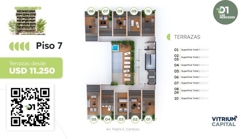 Ubicación y entorno Dimensiones y características del terreno Ubicado a metros de la intersección de las calles Padre Cardozo y Tte. Genaro Ruiz, este proyecto residencial goza de una ubicación privilegiada en el corazón de Las Mercedes, uno de los barrios con mayor potencial de Asunción. Con acceso a dos calles y una posición estratégica, los residentes disfrutarán de la comodidad de tener una amplia propuesta de servicios y atracciones a su alcance. En el prestigioso Barrio de Las Mercedes, en Asunción, Paraguay, se erige un emocionante proyecto residencial que promete ser un referente de innovación en la ciudad. El terreno abarca un total de 910 m2, contando con un frente de 20 metros sobre Padre Cardozo y 21 metros de fondo sobre País Vasco. Este espacio en blanco ofrece la oportunidad de dar vida a un proyecto residencial innovador, moderno y funcional, a partir de una PB que se integra al tejido urbano del barrio, ofreciendo un lugar propio y privado para los residentes de 01 Las Mercedes. Espacios comunes innovadores Cocheras y espacios de estacionamiento La planta baja contará con una terraza a medio nivel sobre la vereda, que albergará un local comercial con un posible coffee store y un espacio de coworking, brindando un lugar ideal para el trabajo y el encuentro social. Además, se incluirá un SUM (Salón de Usos Múltiples) que podría albergar un gimnasio y una cocina con parrilla, fomentando la interacción entre los residentes. La vegetación toma protagonismo dentro de la planta baja convirtiéndose en un parque con acceso a ambos frentes, creando un ambiente verde y transparente de punta a punta. Entrega 2027/2028 La unidad se vende con cochera incluida. Consultar por deptos de mas ambientes. Las cocheras estarán ubicadas en un subsuelo con acceso desde Padre Cardozo, contando, además, con espacios de bike parking, garantizando comodidad y seguridad para los residentes y visitantes.Terrazas accesibles y wet spa en azotea. En la azotea, se encontrarán las terrazas accesibles, que ofrecerán vistas panorámicas de la ciudad y un espacio para relajarse y disfrutar del aire libre. Además, se propondrá un Wet Spa a cielo abierto, brindando un oasis de bienestar y tranquilidad para los residentes. VALERIA LOPEZ PROPIEDADES CMCPSI Matrícula 6213 CUCICBA Matrícula 7515 Las medidas indicadas son aproximadas y al solo efecto orientativo, las medidas reales surgirán del titulo de propiedad respectivo. La presente información y fotos no constituyen documentación contractual. En cumplimiento de la leyes provinciales vigentes que regulan el corretaje inmobiliario, Ley Nacional 25.028, Ley 22.802 de Lealtad Comercial, Ley 24.240 de Defensa al Consumidor, las normas del Código Civil y Comercial de la Nación y Constitucionales, los agentes/gestores NO ejercen el corretaje inmobiliario. Todas las operaciones inmobiliarias son objeto de intermediación y conclusión por parte de los Martilleros y corredores colegiados, cuyos datos se exhiben debajo del nombre de la inmobiliaria.