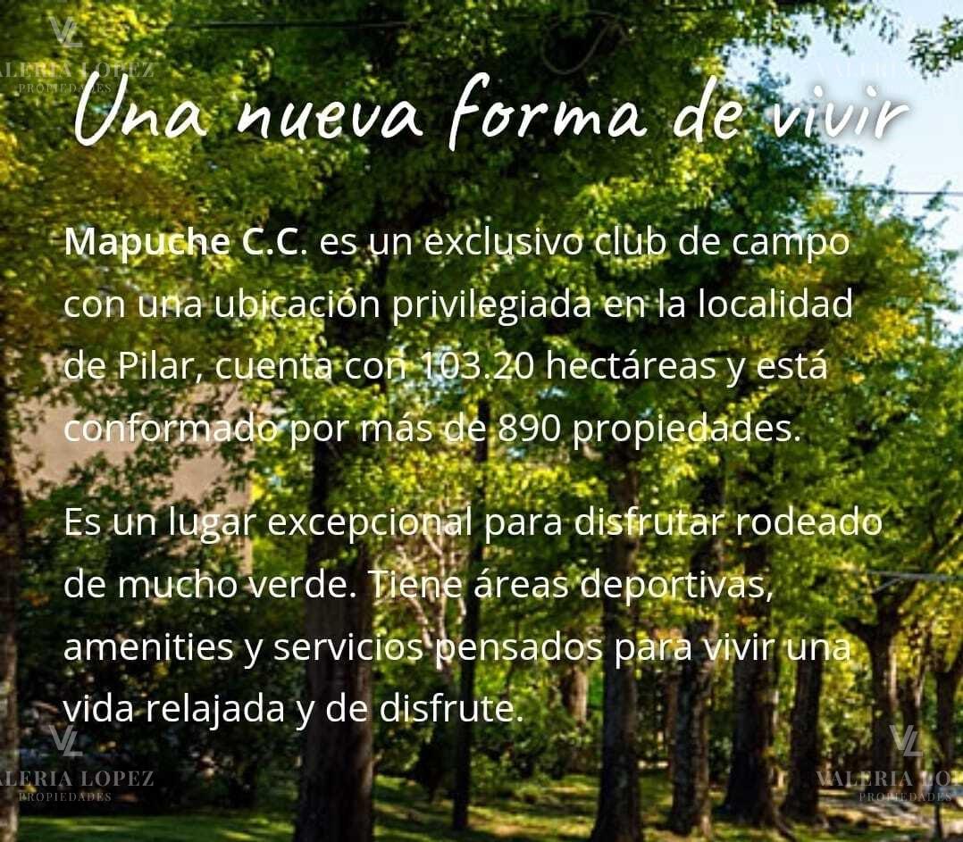 APTO CRÉDITO! Cómoda y hermosa casa sobre doble terreno interno. Planta baja:La propiedad cuenta con un amplio living-comedor con techos de cabriadas de madera muy luminoso, confotable cocina con barra comedor diario y ventanales con vista al jardín. Planta alta: tres dormitorios, dos que comparten un baño en semi- suite, y otro en suite con vestidor. Exterior: quincho con parrilla y comedor. Además, cuenta con dos cuartos adicionales para invitados o servicio. Especial jardín, con cantidad de espacio verde y pileta. Mapuche es un Country familiar, ubicado sobre Panamericana, km 48,5 de Pilar. Ofrece gran variedad de amenities y servicios, como seguridad las 24 horas, market las 24 hs, club house, campo de golf de 9 hoyos, pileta de natación, canchas de tenis, padel y fútbol, y mucho más. Es el lugar perfecto para aquellos que buscan una vida de calidad y tranquilidad en un entorno natural privilegiado. VALERIA LOPEZ PROPIEDADES CMCPSI Matrícula 6213 CUCICBA Matrícula 7515 Las medidas indicadas son aproximadas y al solo efecto orientativo, las medidas reales surgirán del titulo de propiedad respectivo. La presente información y fotos no constituyen documentación contractual. En cumplimiento de la leyes provinciales vigentes que regulan el corretaje inmobiliario, Ley Nacional 25.028, Ley 22.802 de Lealtad Comercial, Ley 24.240 de Defensa al Consumidor, las normas del Código Civil y Comercial de la Nación y Constitucionales, los agentes/gestores NO ejercen el corretaje inmobiliario. Todas las operaciones inmobiliarias son objeto de intermediación y conclusión por parte de los Martilleros y corredores colegiados, cuyos datos se exhiben debajo del nombre de la inmobiliaria